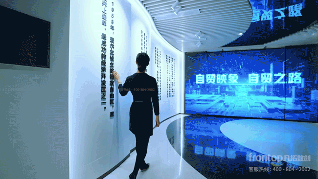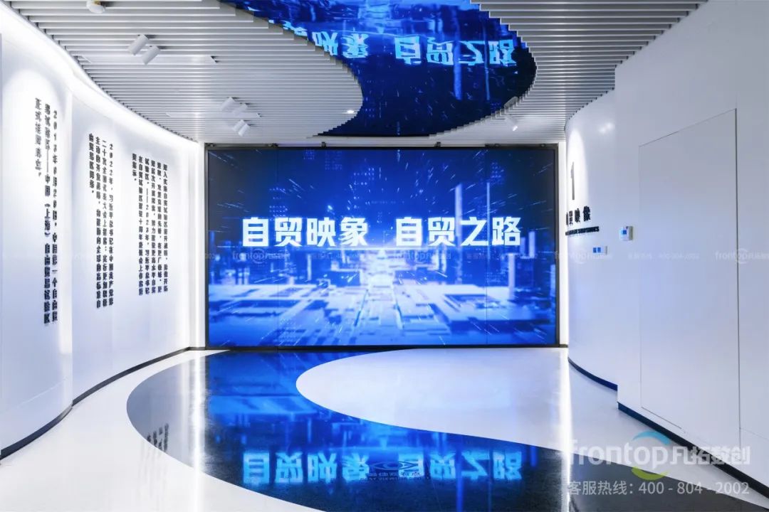 影片結束后機械屏向后滑動,時空穿梭的影像氛圍,引導參觀者走進自貿之門,以全球視角看中國自貿發展更迭。
