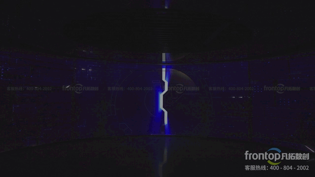 設計具有強交互的飛屏系統,將大數據、人工智能、虛擬現實、數字創意等前沿產業的政策支持及發展情況等內容以動態、全面的方式悉數呈現。