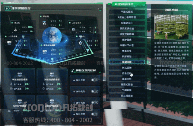 通過數據服務形式對接園區內部水肥監測數據、氣象監測數據、實時監控視頻流數據,搭建集綜合管理與科普展示為一體的領導駕駛艙,提供從宏觀到微觀等多維層面的精細化管理服務。