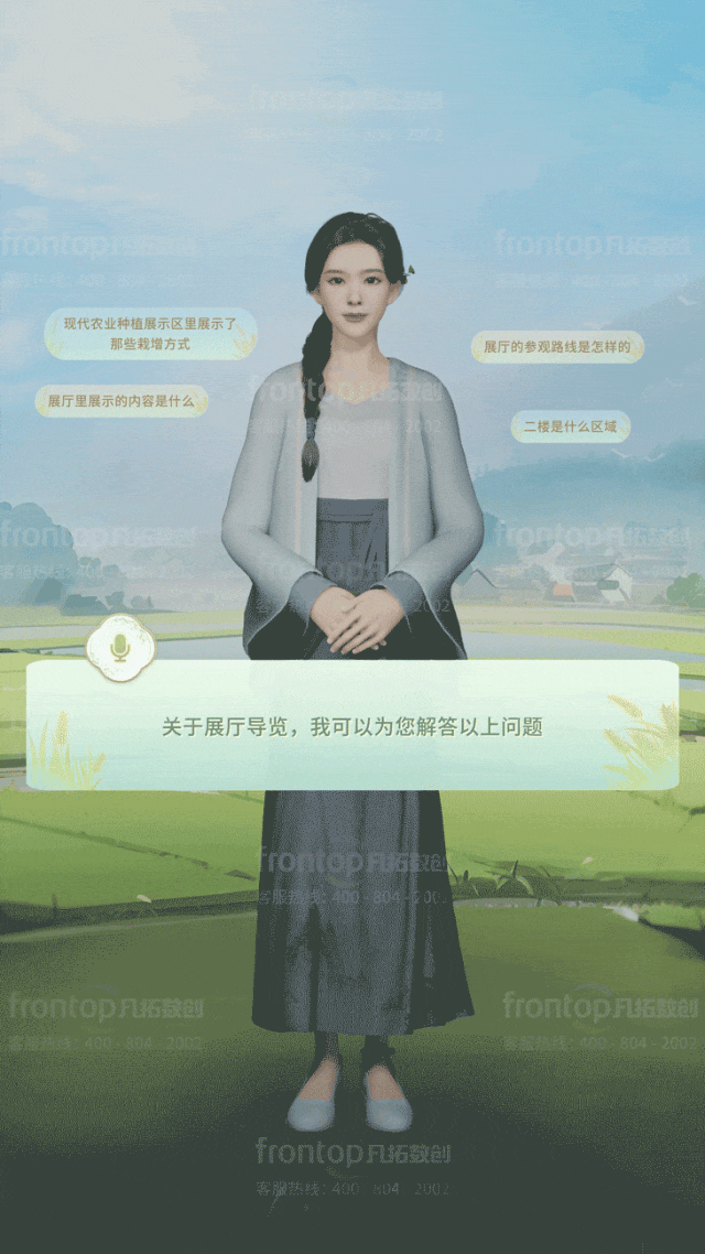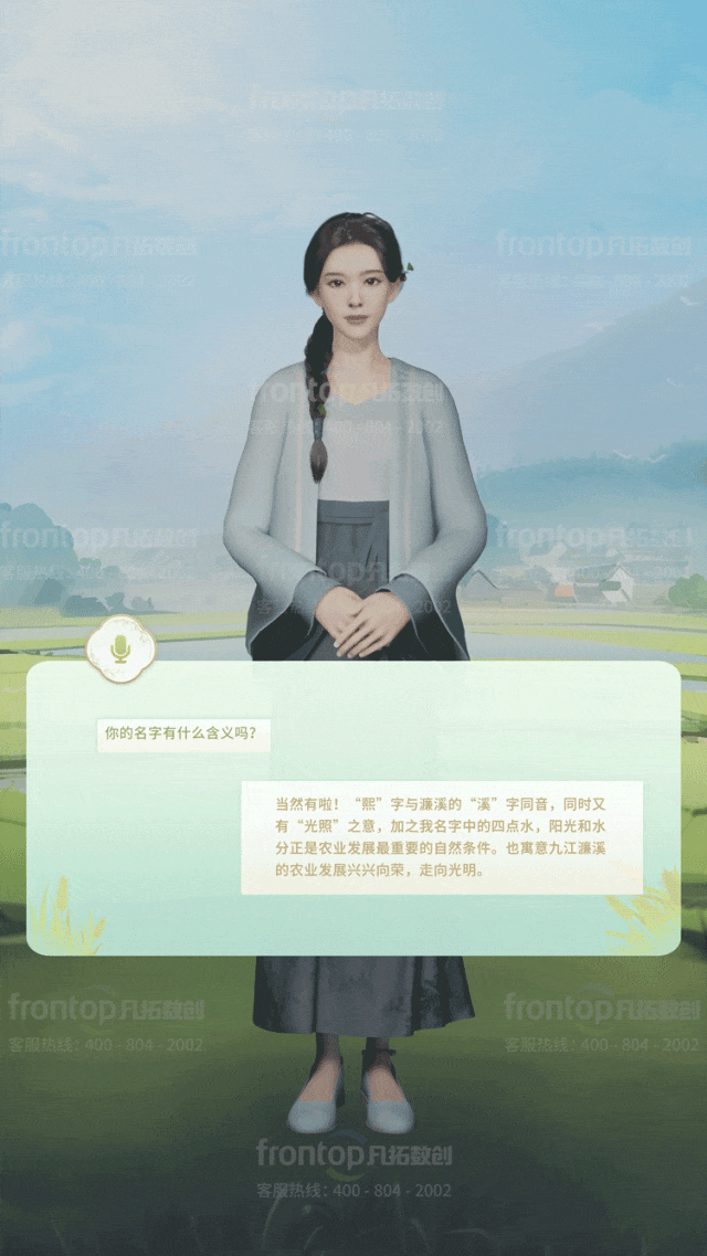 凡拓數創為園區定制打造虛擬數智代言人“小熙”,作為引路人點亮展區,引領開啟現代農業之旅,為參觀者提供更加智能化、個性化、人性化的服務。