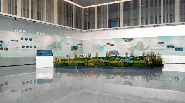 九江農業版圖結合互動輔助展示,闡明九江包括濂溪區在內的各區域地理位置、自然條件、發展情況等,從展廳敘事開篇強調九江在中國農業上的重要地位。