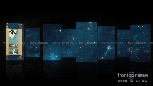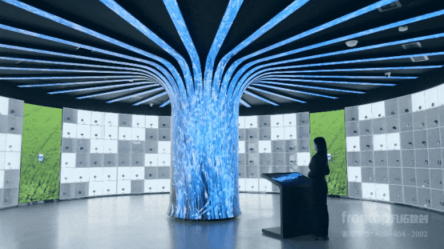 多屏聯動結合互動感應地幕打造沉浸式多媒體劇場,以九江農業名人和名著名言為切入點,從宏觀到微觀,以人文視角傳遞出華夏人民包括九江人的農業觀,給人帶來身臨其境的空間感和極強的代入感。