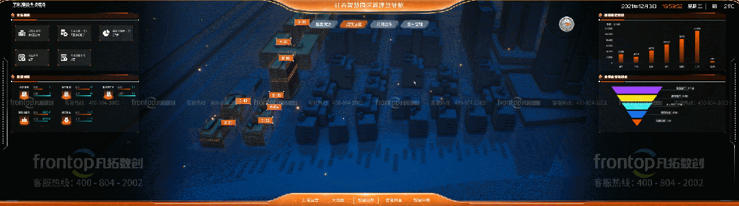 ▲一鍵切換宏觀、中觀、微觀角度下不同區(qū)域的三維展示,促進(jìn)訪客對(duì)園區(qū)規(guī)劃布局的了解