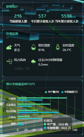 ▲濱海農(nóng)旅·朗坤農(nóng)科園智慧園區(qū)可視化管理系統(tǒng)