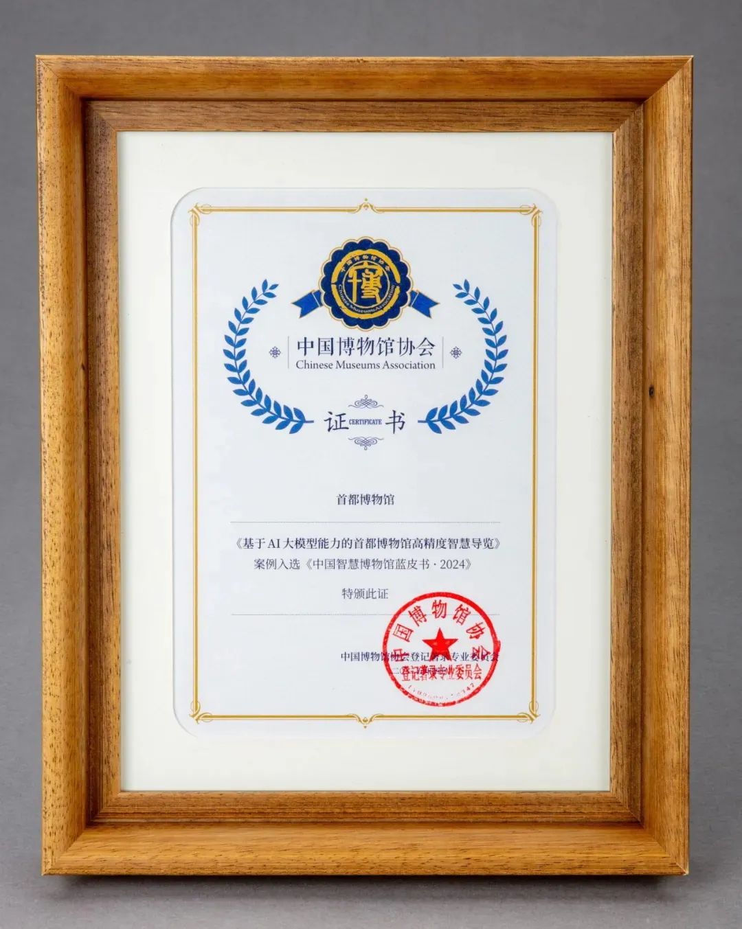 這套AI智慧導覽系統入選了《中國智慧博物館藍皮書?2024》,及入圍“2025年度中華文物新媒體傳播精品推介項目”。