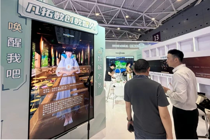 凡拓數創原創數智人“班昭”再次亮相文博會,“班昭”搭載定制化AI大模型及專屬知識庫,具備語義理解、自主學習和個性化交互等智慧化能力。“班昭”化身展區數智推介官,為觀眾提供更自然有趣、更具人文溫度的公眾服務體驗。