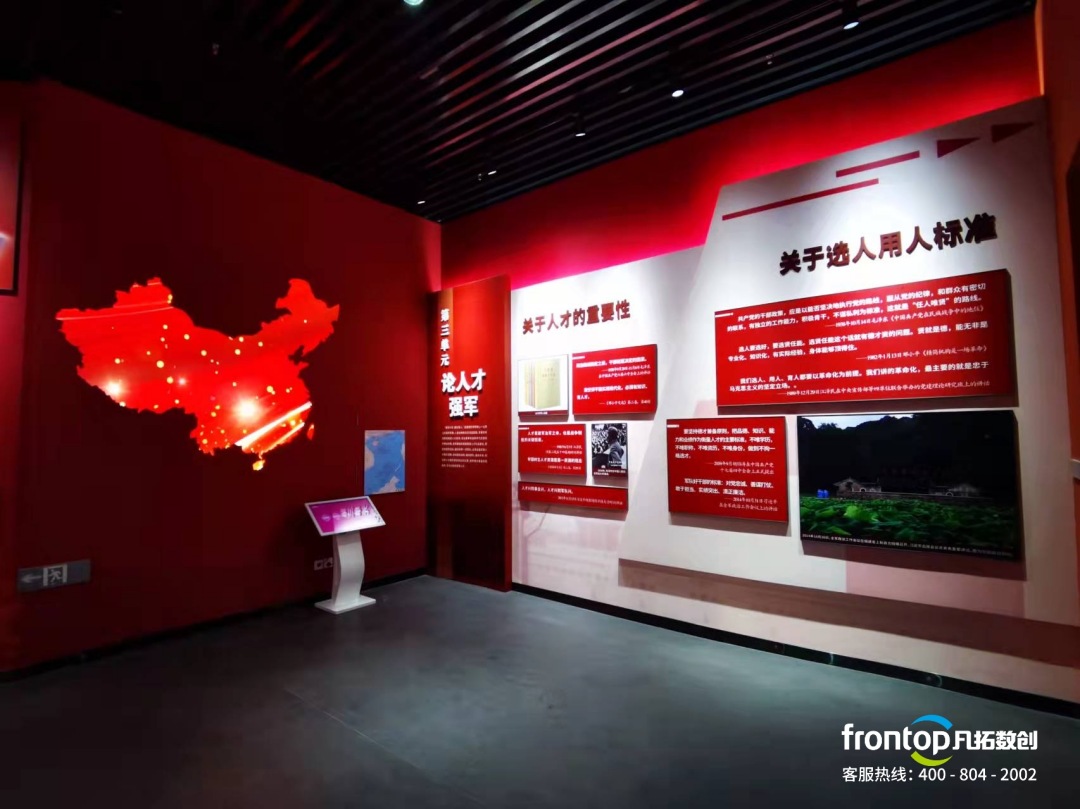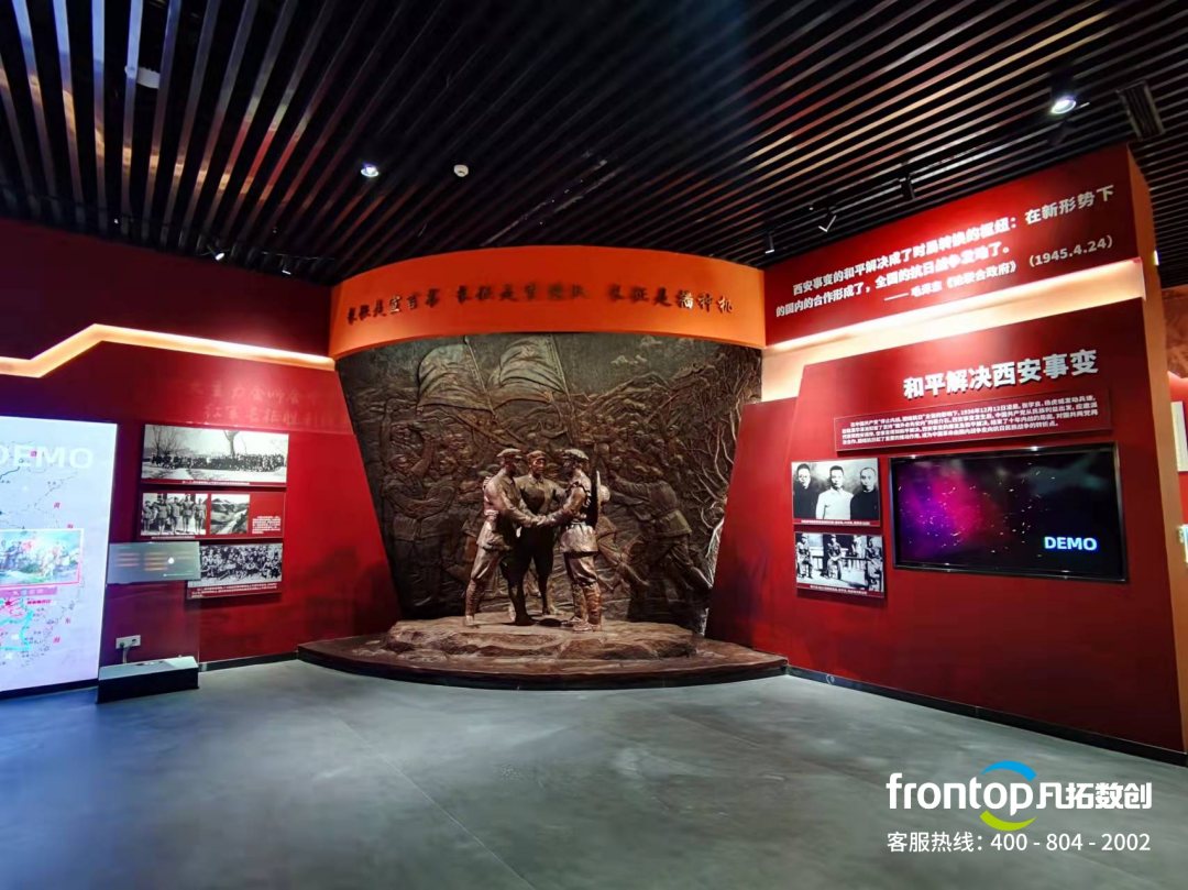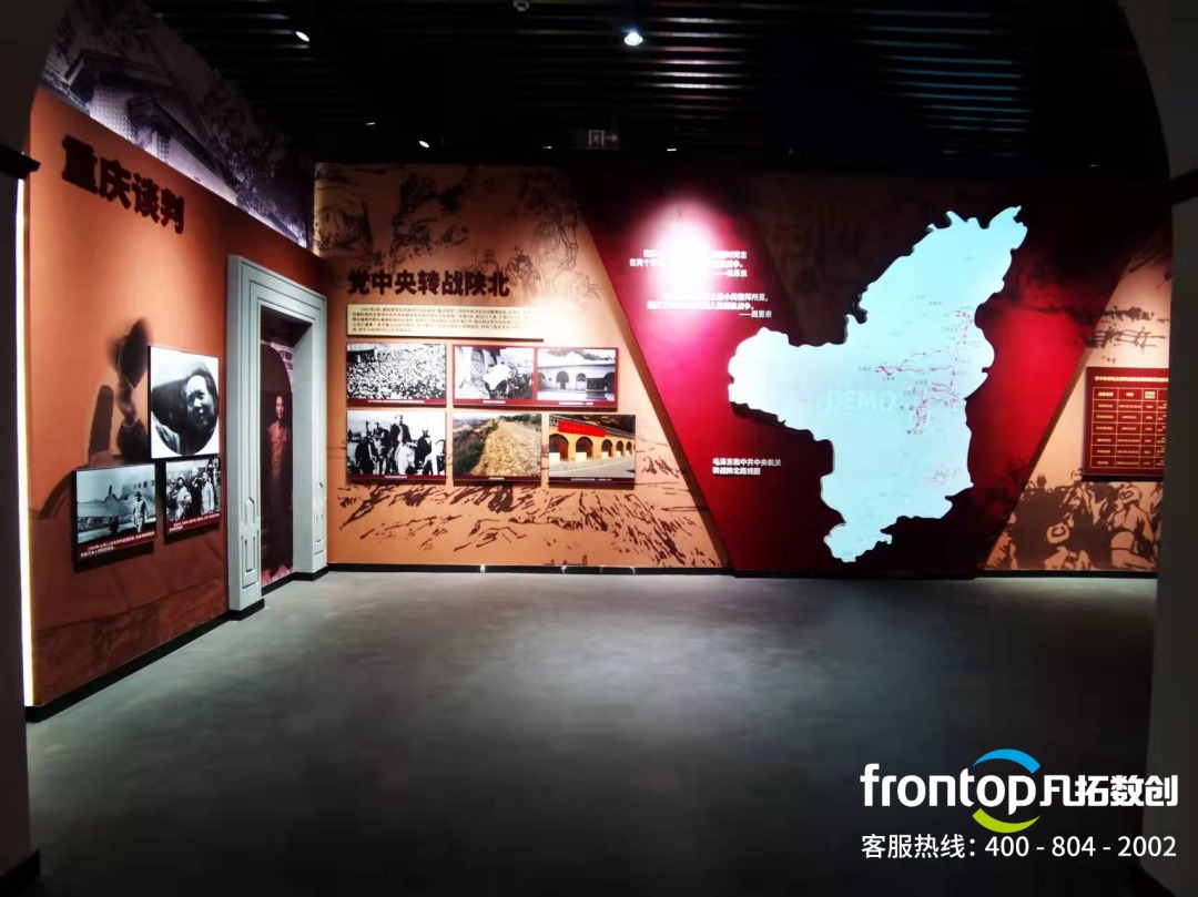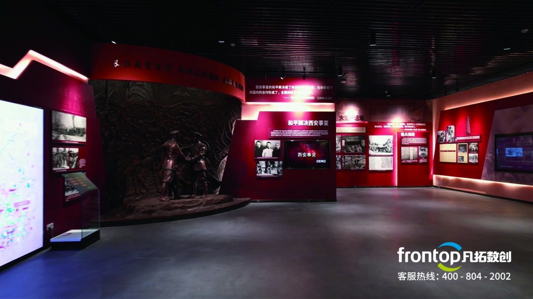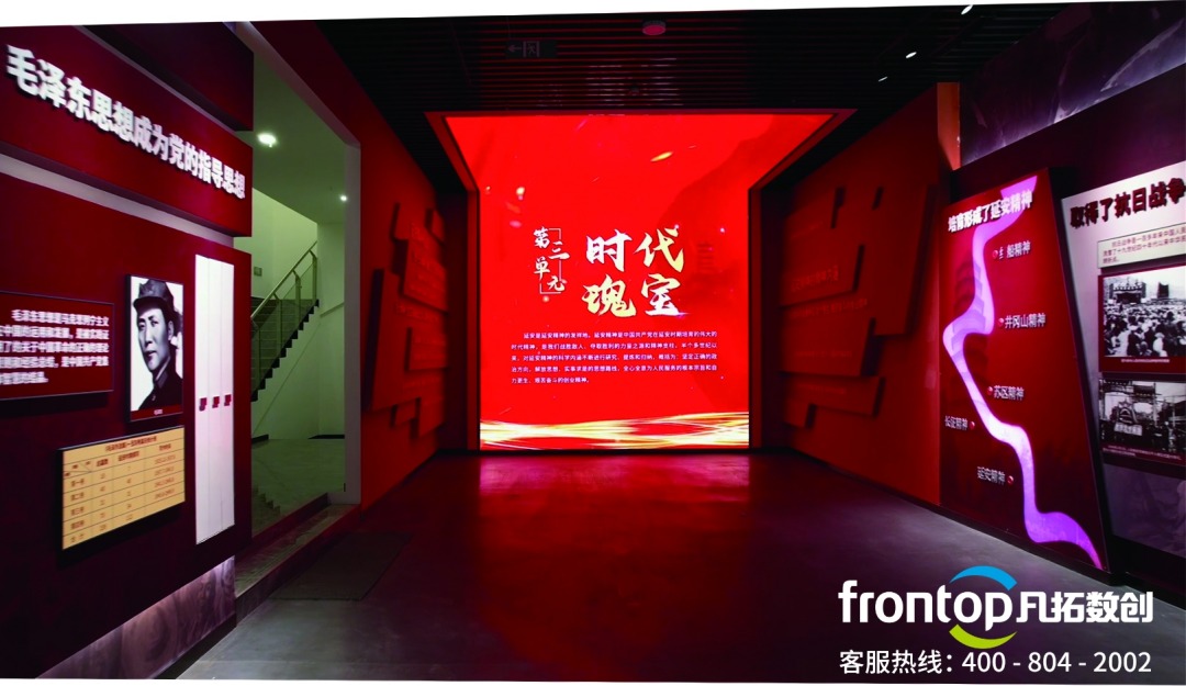 以黨史為依據,典型事件、重要人物等為內容,打造集陳列展示、教學參觀、實踐體驗、研討交流、資料查詢等功能于一體的多元紅色基因教學中心。該展廳擺脫了傳統的展覽方式,借助科技手段在動靜相濟、明暗共融的展陳空間內,創造充滿創意與趣味的、吸引眼球的展現形式;通過對多媒體技術的運用,新的設計風格、充滿節奏感的空間表達應運而生,帶給觀眾更多新奇有趣的觀覽體驗。