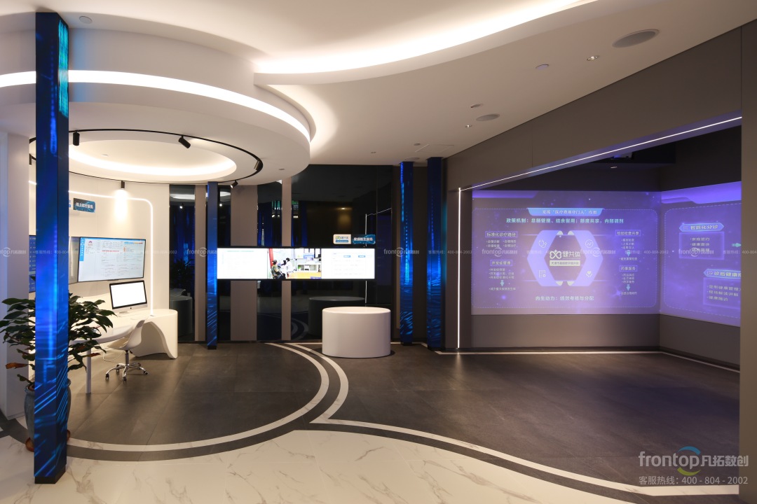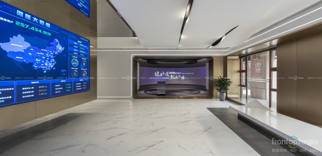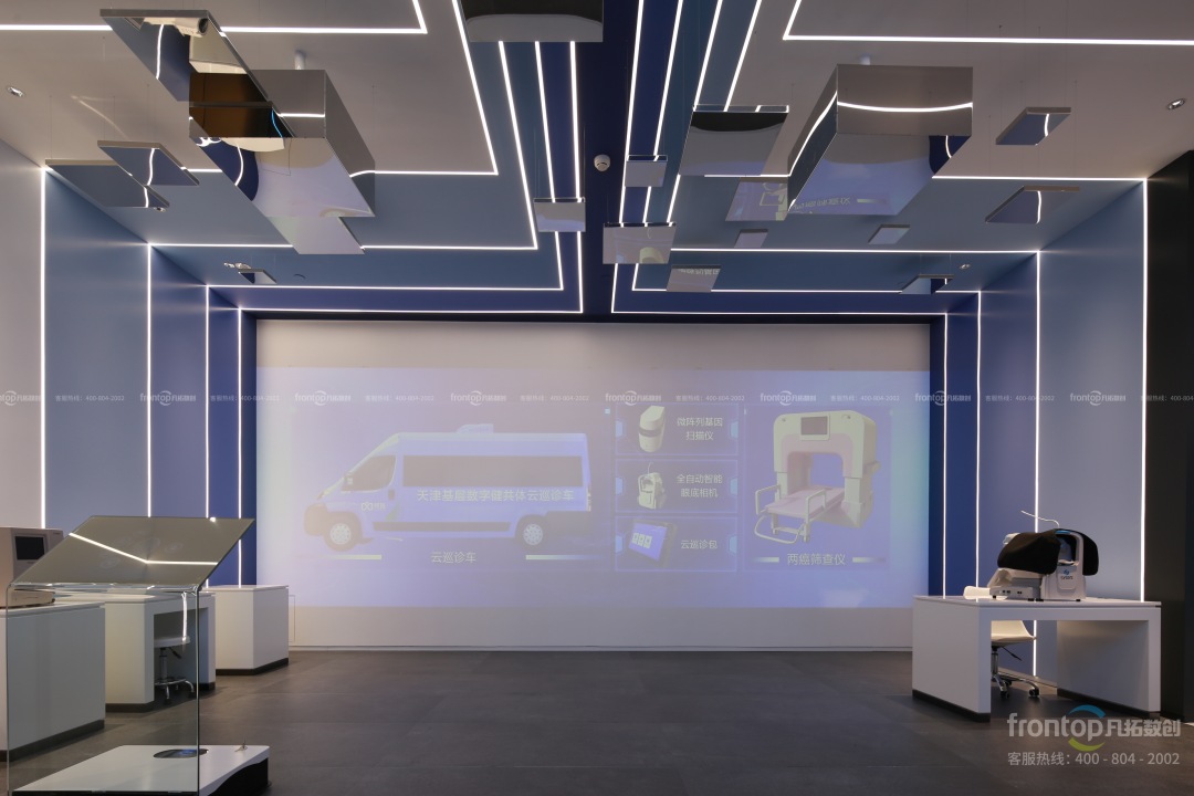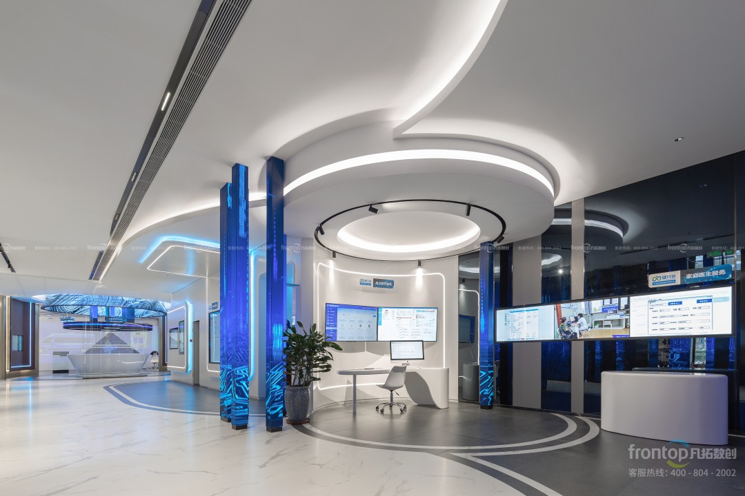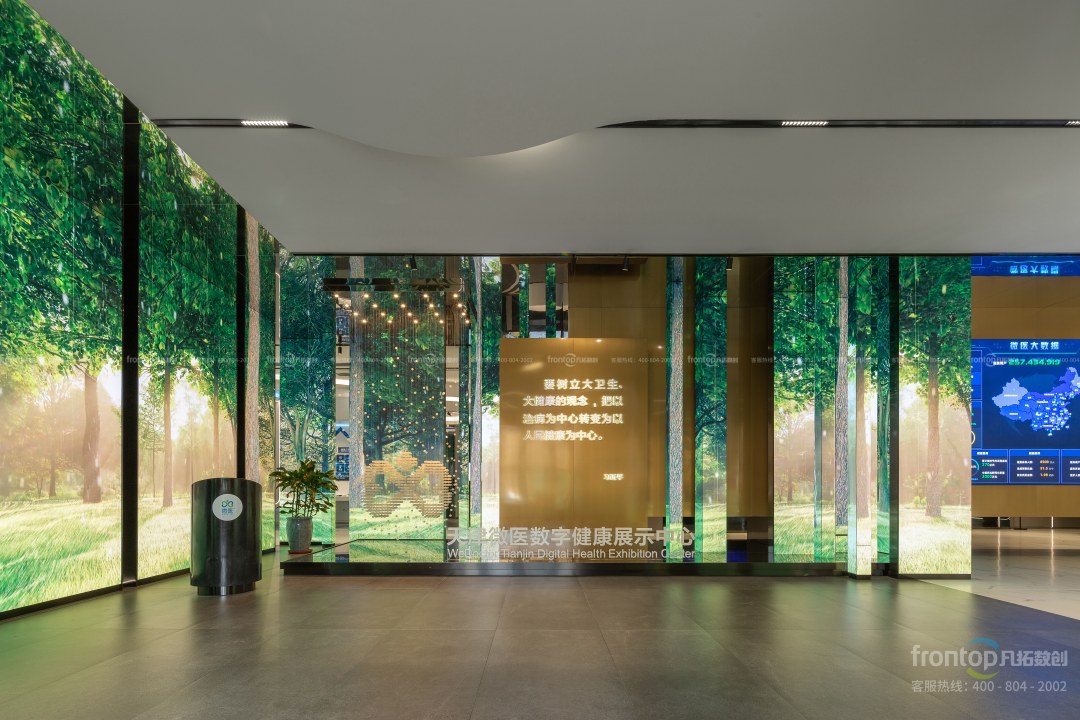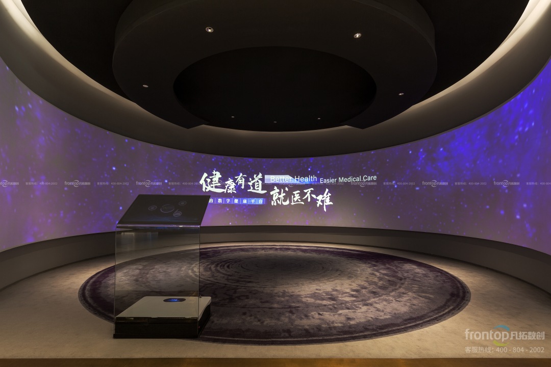 數(shù)字健康天津模式展示中心利用互動、數(shù)字化理念,踐行當代藝術(shù)設計,打造一個沉浸式體驗空間,多種互動,新媒體的展示方式,有趣,直觀地展示天津數(shù)字健康新模式。采用全息互動技術(shù)展示個人數(shù)字模式,數(shù)字魔鏡通過紅外感應、納米觸摸技術(shù),把天津健康數(shù)據(jù)展示與空間相互融合,把展示“藏”與空間中,突破屏幕的邊界,化有形與無形。