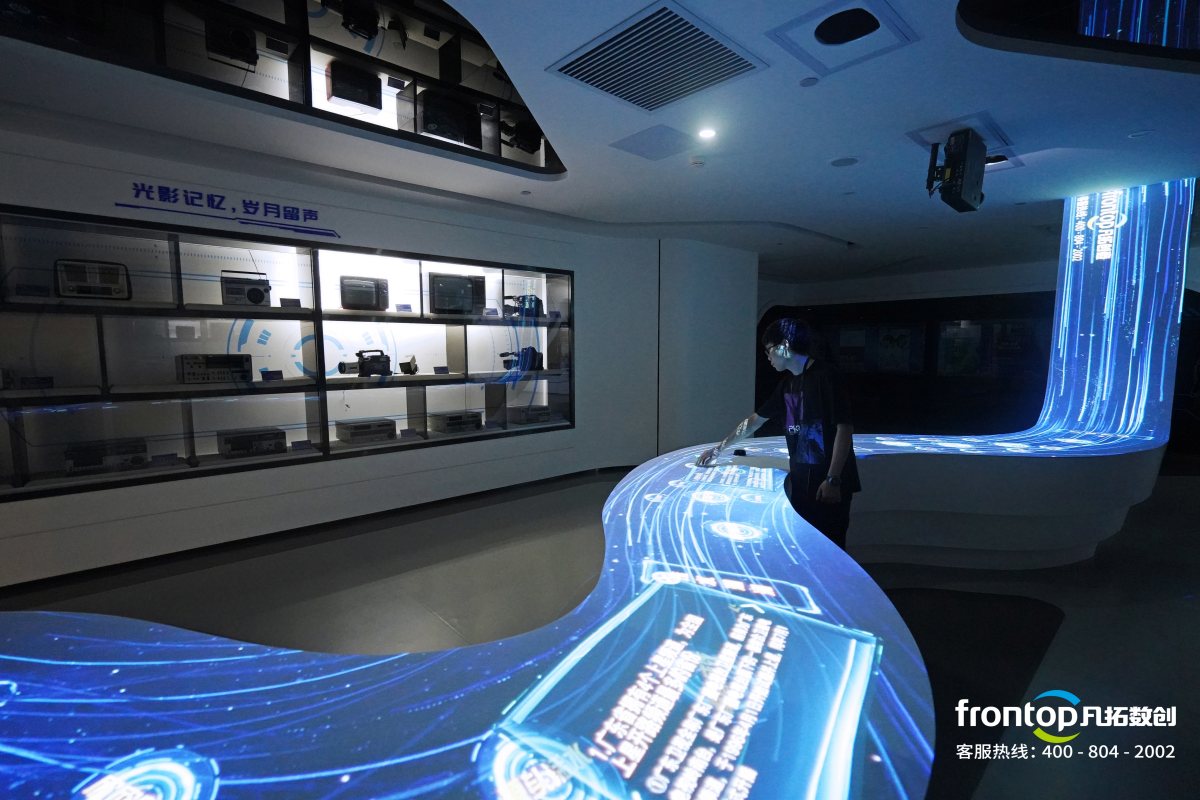 凡拓數(shù)創(chuàng)助力廣東省廣播電視局打造走在科技發(fā)展前沿的廣電行業(yè)智慧展廳,展示廣電當(dāng)前最領(lǐng)先的監(jiān)管業(yè)務(wù)與技術(shù)、廣東廣電媒體融合發(fā)展的思路與成果。弧幕大屏、互動流水臺生動演繹企業(yè)發(fā)展歷程與未來展望,觀眾可通過體感互動輕松獲取影視精品,在裸眼3D電視機(jī)體驗3D視覺效果。豐富的多媒體互動展項闡釋新時代廣電發(fā)展的內(nèi)涵,詮釋新技術(shù)云集、新智慧激蕩、新力量匯聚的廣播影視行業(yè)發(fā)展趨勢。