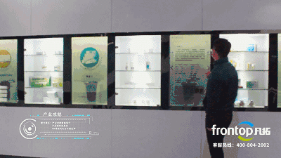 集透明感、科技感、互動體驗感等特色于一體。將創新藥物放進展柜,利用智能觸控功能,參觀者輕觸屏幕即可在屏幕中展開詳細的藥物講解。