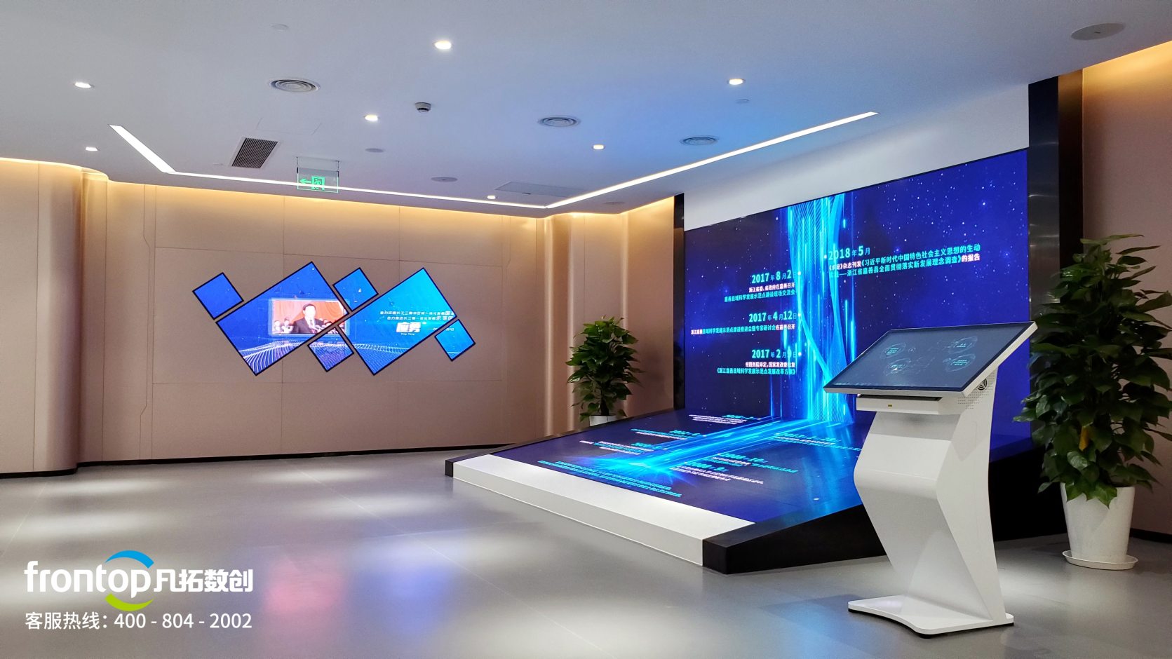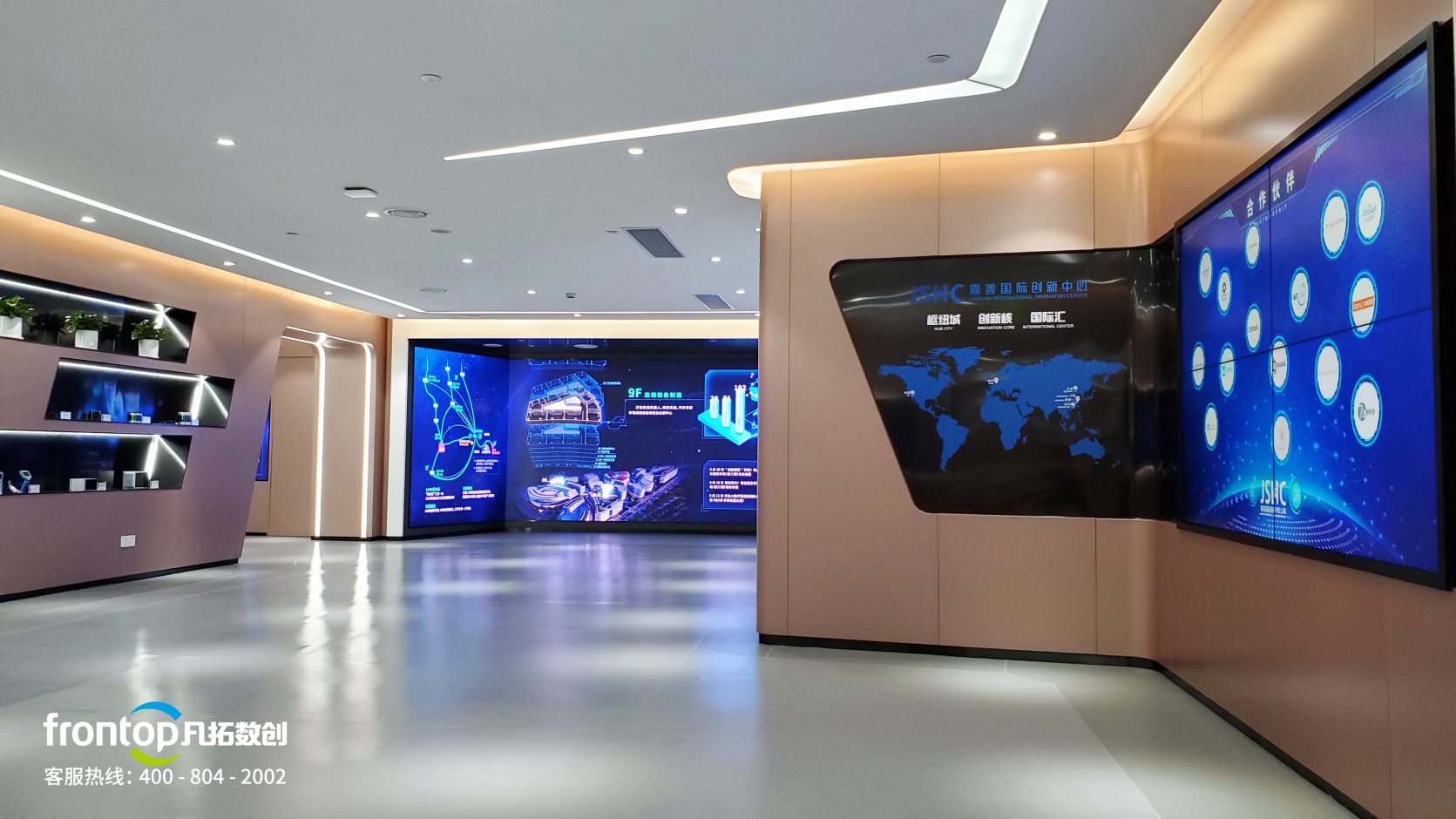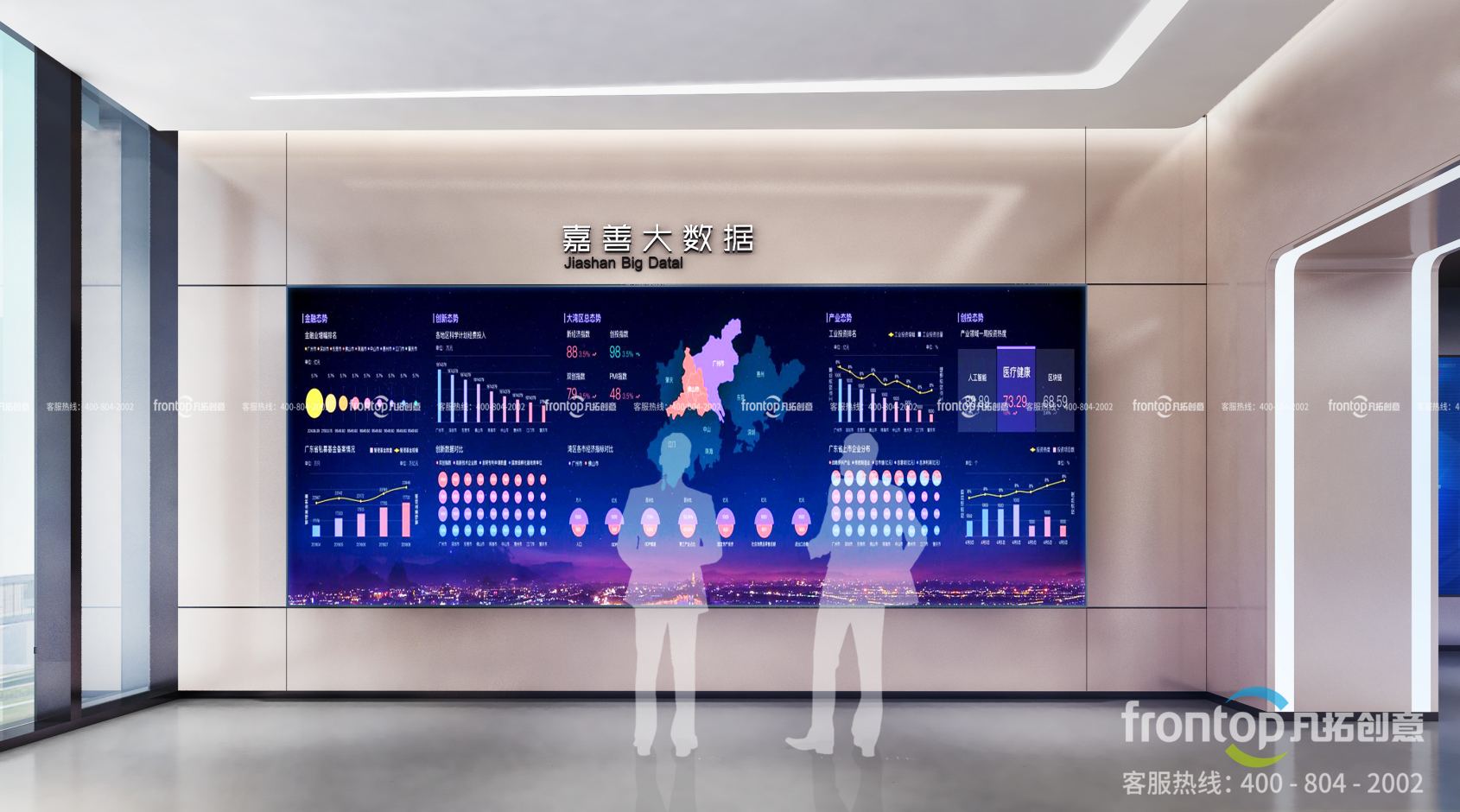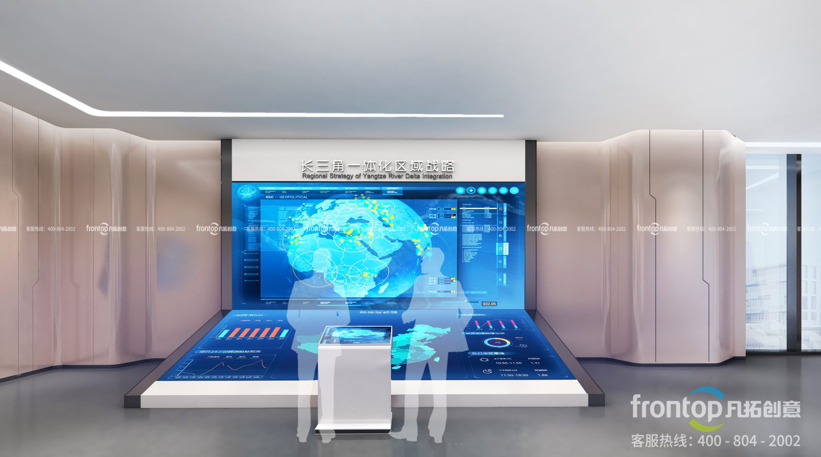 嘉善國際中心(上海)是嘉善縣著眼于示范點建設發展的總體部署,首個在滬人才科技孵化“飛地”項目。主創團隊突破傳統科技感色調,采用簡潔大氣、現代感的空間風格,運用L型高清屏、三折式大屏等硬核裝置,精良制作的數字主題影片,實現展項和展示內容有機結合,形式服務于內容,讓大數據可視化,從經濟總態勢、產業態勢、創新態勢三個維度理性分析嘉善的發展水平,以圖表、地圖結合實際數據的形式綜合呈現,運用多媒體高科技展項增強人機交互和內容延展,使展廳頗具創意性和互動性,讓觀展者多方面、深層次感受嘉善獨樣魅力。